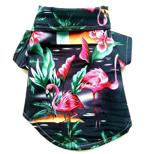 CHEMISE HAWAÏENNE NOIRE FLAMANTS ROSE POUR CHIEN